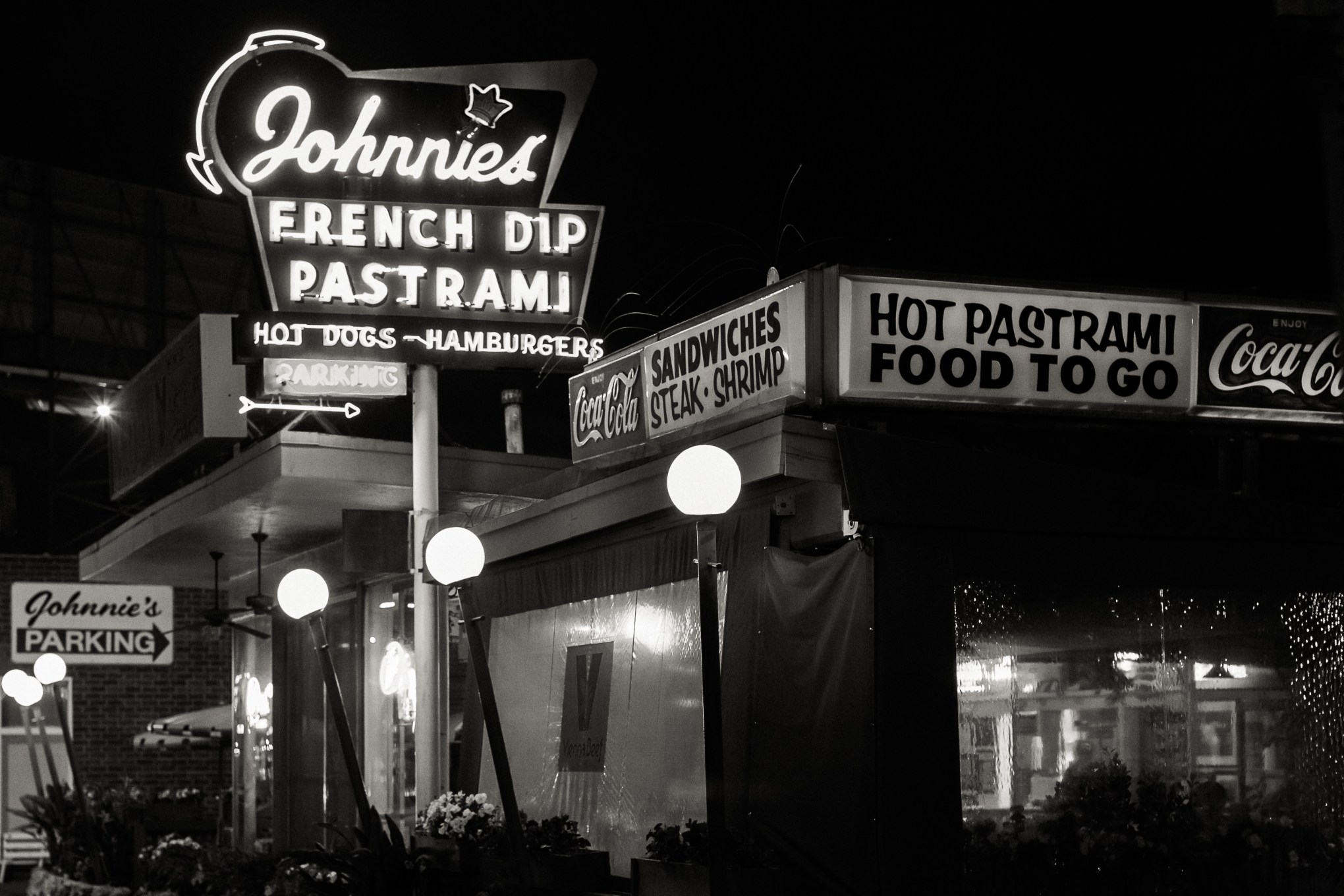 I met with a friend in Culver City tonight and on the way home, I drove by Johnnie’s. I’ve eaten here a few times and have driven by several times. I don’t know why, maybe it’s the neon and the nostalgia, but there’s something about this place that I’m drawn to. Didn’t eat here tonight, but pulled over and grabbed a shot.