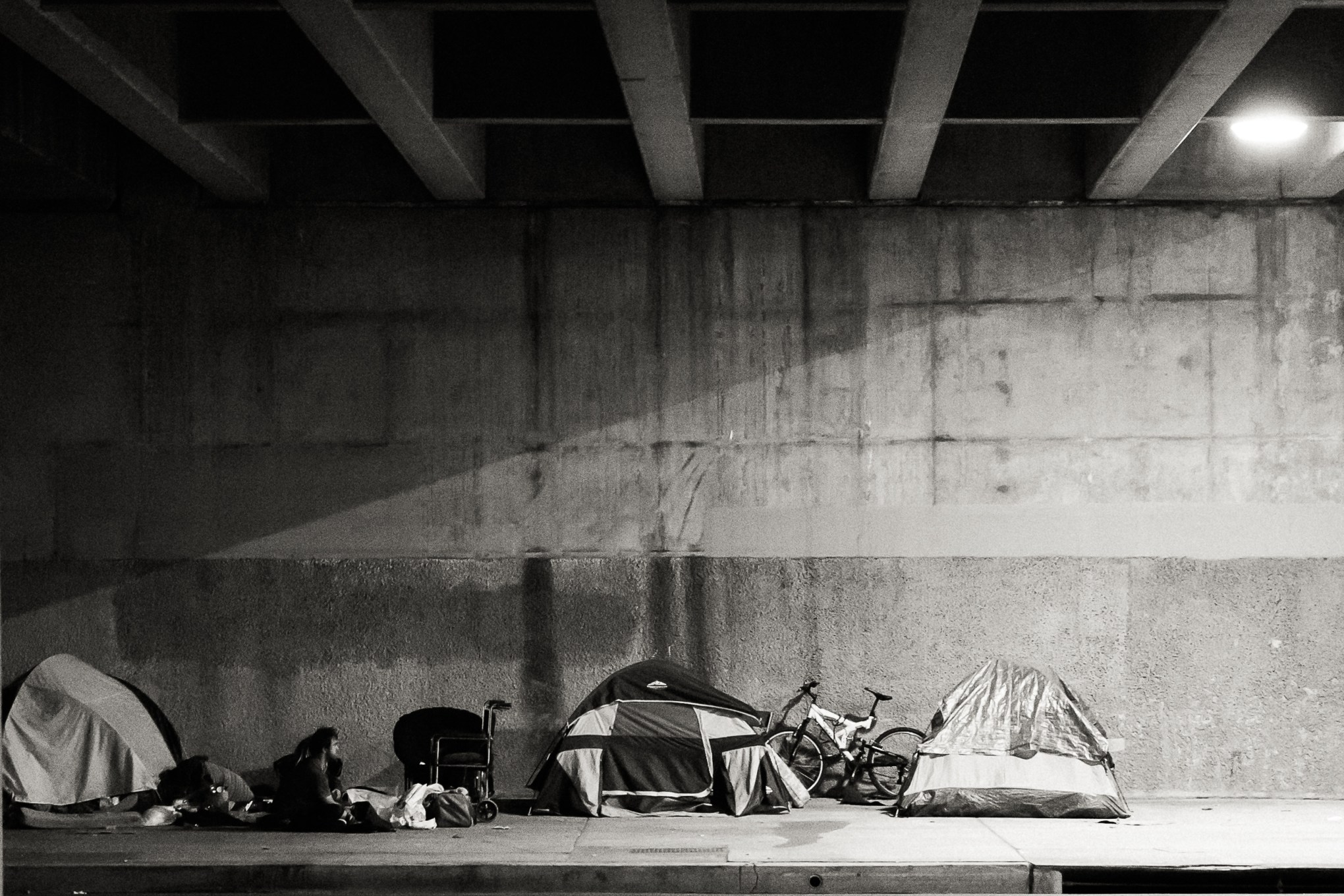 Living in Southern California where the weather is pretty nice nearly all year long, we have our issues with “homeless”.  It’s an interesting dilemma as I think the homeless can be broken out into three major buckets: A) Mentally ill, B) Addicts/Alcoholics (probably a sub classification of “A”), and C) those that are down due to unemployment and genuinely can’t secure employment and somehow, even after years of contributing, seem to have fallen through the cracks.  I’m no expert in this area, but have worked with the ‘alcoholic/addict’ variety quite a bit over the years and have seen many incredible transformations once the cycle of addiction is broken.  Tonight, as the kids and I were driving home from their youth group, we passed by this ‘tent city’ under the 405 freeway overpass on Venice Blvd.  What I found interesting was the couple that was sitting in front of their tent, with the wheelchair next to them, were sharing a beer and just hanging out.  There are many that would rather get off the grid and live the nomadic life.  We lump this into “homelessness”, but is it really?  These guys seemed like they were Urban Camping, a community, language, and way of life unto themselves; hustling day by day to get enough through the day.  Passing by was definitely interesting, one tent had a nice leather chair out front, perhaps their porch?  Anyway, I’m always fascinated by the juxtaposition of the “homeless” against businesses and society as a whole.  I’m also thinking that we can’t blanket the term ‘homeless’ to all of those living off the grid, on the streets, panhandling. Some are, and need all of the help and support that we as a society can give to provide dignity and a ‘hand up’, whether education, retraining, temporary housing, rehab for those that want it (I find that those who need it, often can’t be helped until they actually want it), and for those that would rather be urban camping, I say enjoy!  I personally love the mountains for that, but to each his own! 🙂  And Southern California, especially Venice Beach and “Our People’s Republic of Santa Monica” aren’t too shabby of places as our laws seem liberal to this way of life.